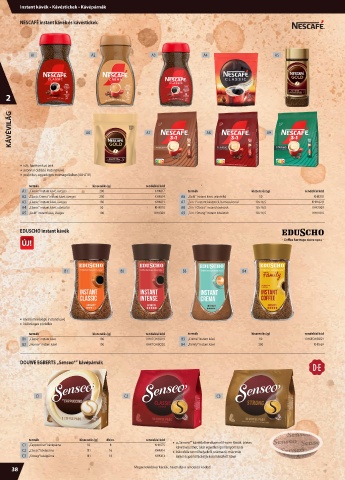 A2 „Classic Crema” instant kávé, üveges 200 KHK614 A6 „Gold” instant kávé, utántöltő 50 KHK310