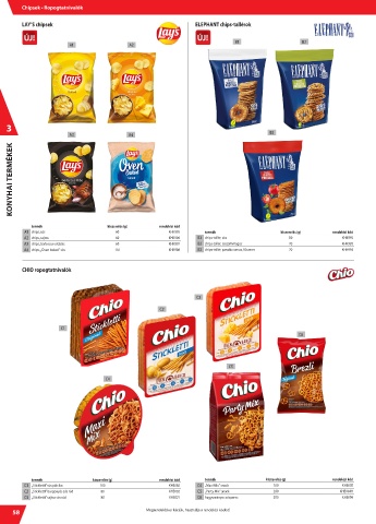 A4 chips, „Oven baked” sós 110 KHK998 B3 chips-tallér, paradicsomos, fűszeres 70 KHK994