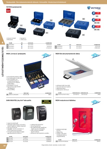 Pénzkazetták • Fém dokumentumtároló-dobozok • Kulcsszéfek • Vészkulcstartó falidobozok