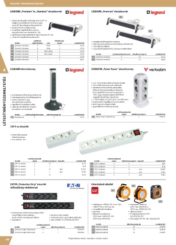 230 V-os elosztók 4 kábel hosszúság (m) rendelési kód D termék száma kábel hosszúság (m) rendelési kód